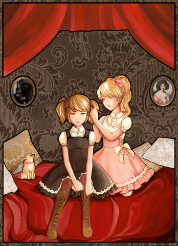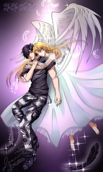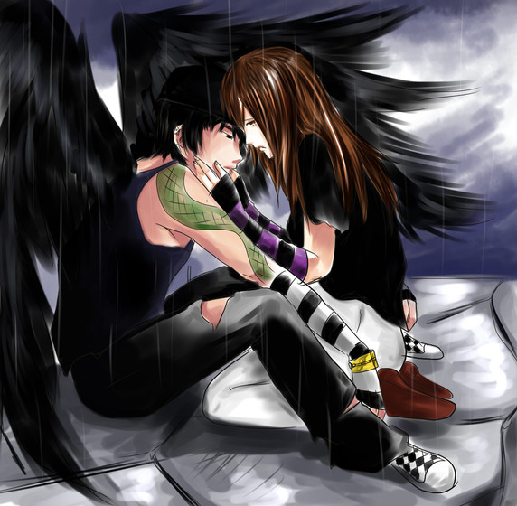 Her wings look so beautifull, you did a really good job with the dress and her hair. The effects make it look as the whole picture would be moving. Since we can't see their faces, it gives a really misterious felling too.