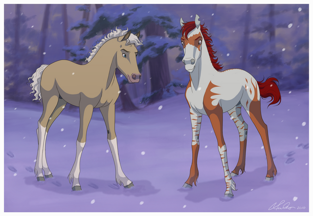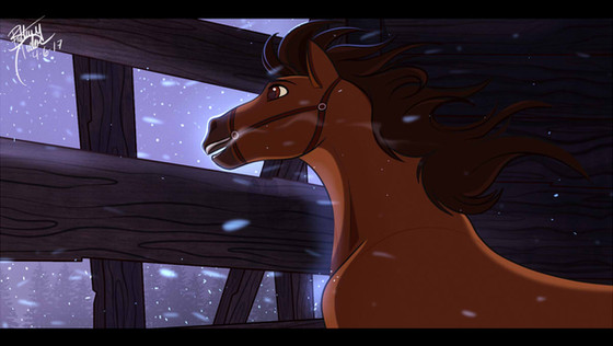 That is amazing. Love it! I loved the scene of Spirit when he was a colt and his tongue got stuck on the ice I will always love that film! You brought it to life in this artwork! Thank you!