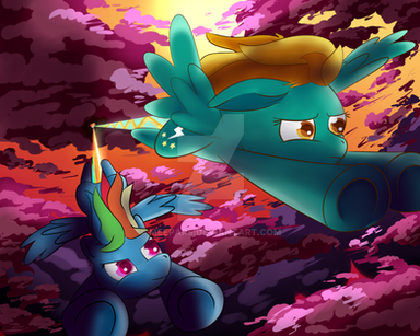 YAY!! Rainbow Dash and Lightning Dust!!i suck at perspective, i know, i think i'll stop doing those drawings using human references e.e