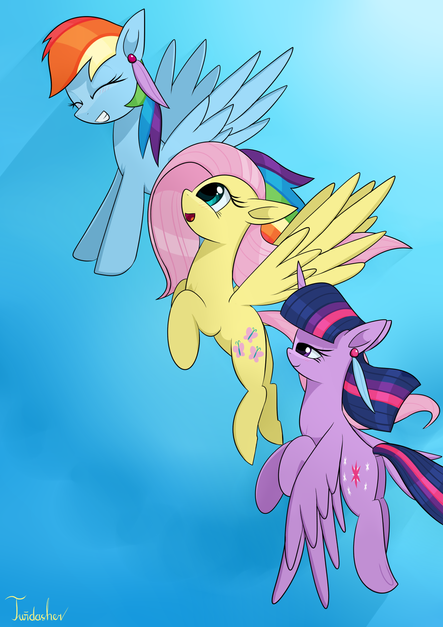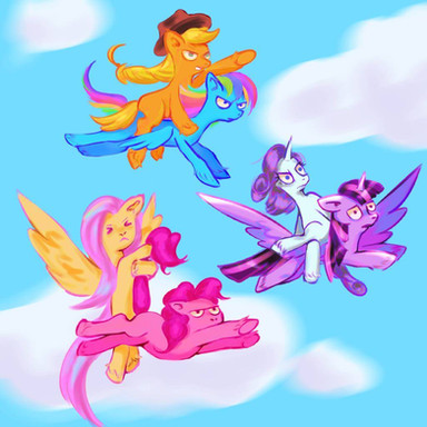 i drew Rainbow first, after drawing her i got the idea of making the Mane six falling and.....well...ta da!!