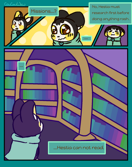Oh right, the library! Cape followed after Konjac, Mari trailing behind. Now that everything had more or less calmed down, they could see the extent of the damage to the library itself, and to Cape and Konjac’s dismay, it wasn’t any better than outside.
