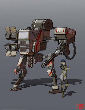 Never enough minigun xD Always great when people add soldiers walking beside their mechs, always makes the image and ties it together