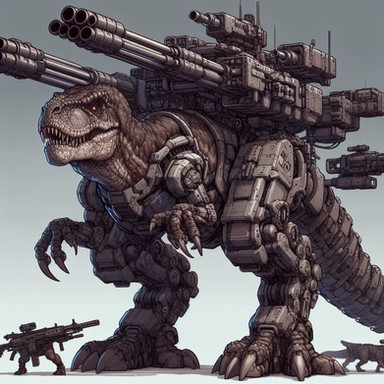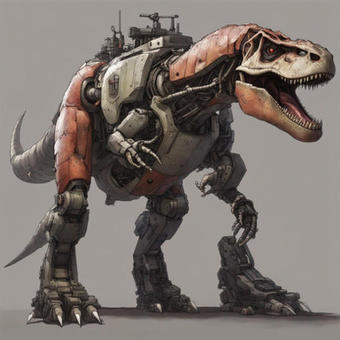 This is a great piece of work. I love conceptsΒ like this: cybernetic modifications or high-tech armor added to cool creatures like your T-Rex. YourΒ armor/exo designΒ is very original and your artwork is excellent.