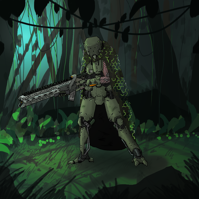 #mecha #military #robot #sciencefiction #soldier #jungle #sniper #sniperrifle