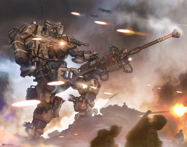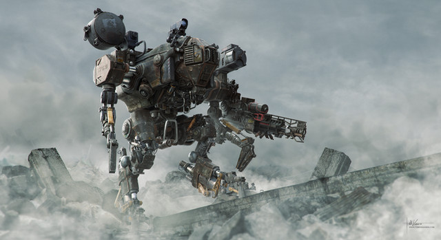 I don't think it's mecha...it's exosuit more likely. Look, legs and hand of the user are visible. It's some heavy exosuit armor