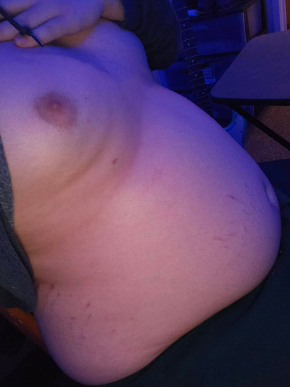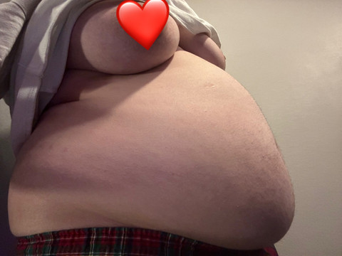 Loving my gains… my tits are finally getting fatter along with my belly! I feel so bloated in this pic, I definitely need some hands on my gut to play with it and rub it~Side note, I got out of the shower, tried putting on my work pants… only to find they don’t fit anymore, the button popped CLEAN off when I tried to button them (hooray…?) 🥲 does anyone want to send money for new pants? 😅😅 I’ll love you foreeeever! I’ll even send uncensored topless pics if you dooooo~