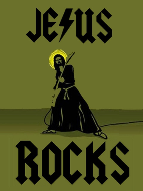 Heh, I had the idea for a shirt so here it is: The Jesus Rocks stencil design.Related content