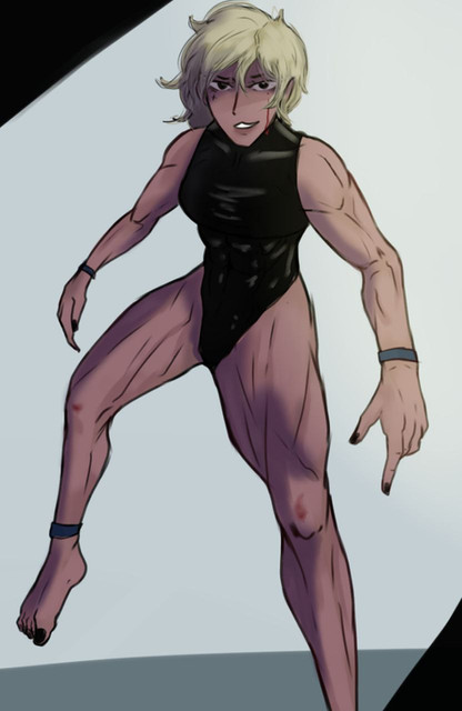 Experimenting with big hue contrast on the skin.My OC, Keri, after leg day