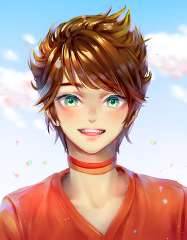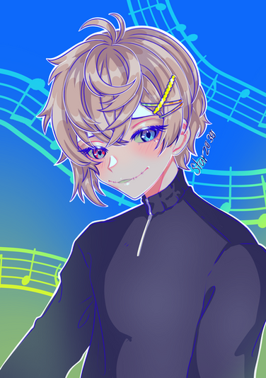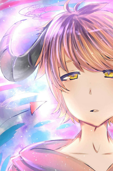 I really like how the bright pink horns contrast with the rest of the characters more muted colors (besides the green jacket). ^^