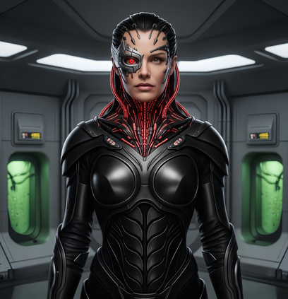 #fanart #scifi #cyberpunk #cyborg #ai #dreamup #borg #corruption #crossover #evil #latex #rey #robotization #sith #startrek #starwars #daisyridley #ai_art