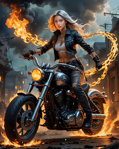 #ai #bike #bodysuit #catsuit #fantasy #ghostrider #latex #leather #marvel #moto #motorcycle #spandex #superhero #superheroine #aiart #dreamup