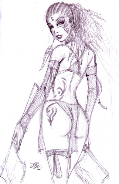 i was browsing some random pics and i saw one from a korean game (i think) that had a chick with a butt tattoo, so i did this one. its not really supposed to be her, i just liked the tattoo...Related content
