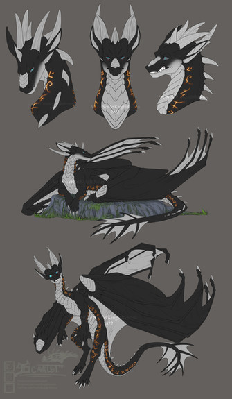 Made a new dragon!!i started a little sketch design of her back at the start of June, and now wanted to take a break from Art Fight for a bit to finish her up an actual full ref! I’ll probably be adding her to my Art Fight characters now too but, yeah wanted to give a bigger ref a go instead of the single view ones I’ve done so far, it was a lot to draw but fun to put together!!