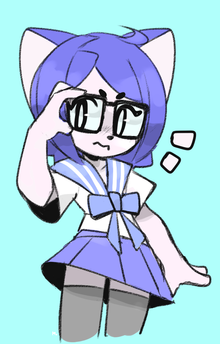 #anime #anthro #blue #digital #furry #glasses #hair #original #school #tail #mangastudio #anthropomorphic #backpack #bookbag #cat #neko