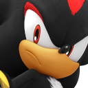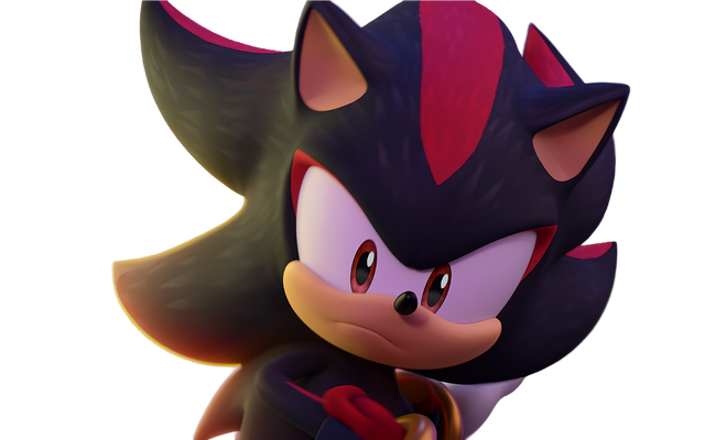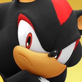 A roster portrait of a black hedgehog, Shadow the Hedgehog. (in his artwork from Sonic & Sega All-Stars Racing)Sonic & Sega All-Stars Racing (with Banjo-Kazooie) by Sega and Sumo Digital.