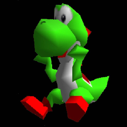 A roster portrait of Yoshi (in his trophy model/design from Super Smash Bros. Melee).Super Smash Bros. Melee by Nintendo and HAL Laboratory, Inc.