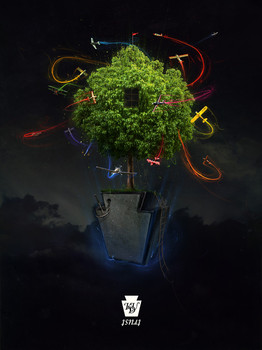 This is very amazing, the colors are very good choices of dark and light and i love that you added some animals that was a very nice touch and the WHOLE tree idea is amazing, that sky is a brilliant color and the bottom is like a sketch pad.... I LOVE IT very nice job (pats back)