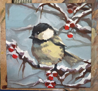 #acrylic #bird #blackcappedchickadee #canvas #chickadee #nature #pine #smallbird #tree #traditionalart