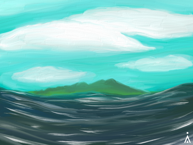 #island #lava #mountain #nature #nightsky #ocean #stars #acryliconcanvas #acrylicpainting #traditionalart #volcano