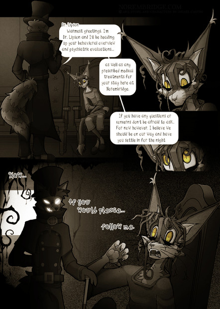 =Welcome to Norembridge!= A webcomic series involving a cast of anthropomorphic mental patients within a 1950s Americana era. If you're new to the Webcomic why not give us a read? There awaits a fantastically grim and adventurous venture of madness, self-discovery, and recovery. Genre, Suspense, Thriller, Anthropomorphic, Vintage, Hospital