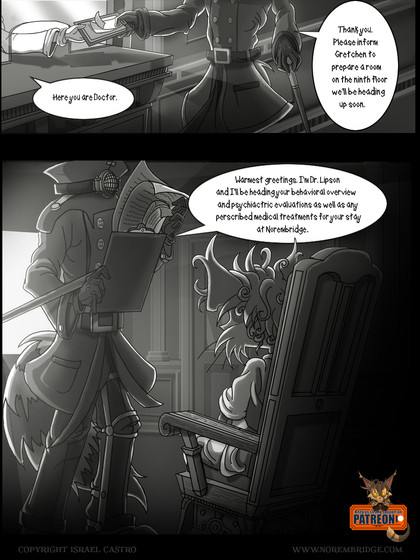 Norembridge is a webcomic series set in the late 1950s revolving around a group of Asylum patients. In this adaptation of the universe we see a reflection of key points of our own in setting, time, events and general history. The most prominent exception here being through the eyes of anthropomorphic characters.