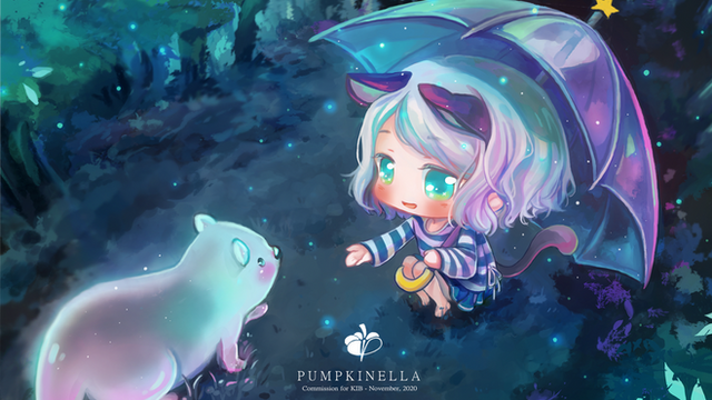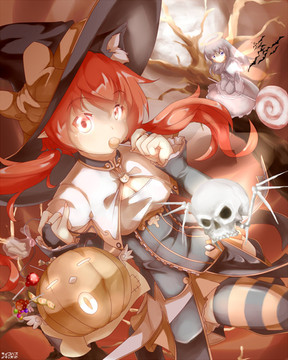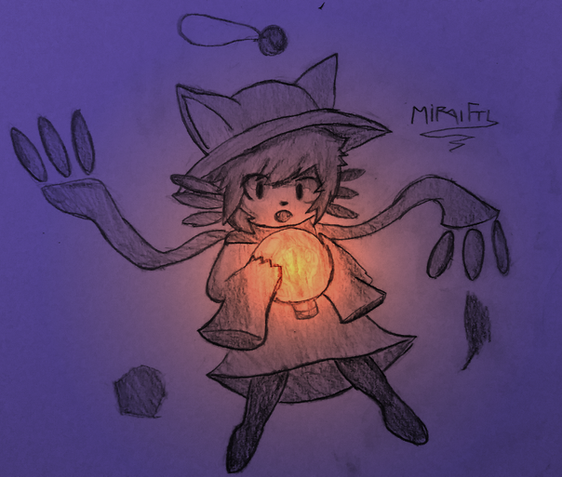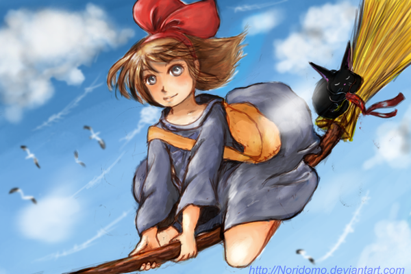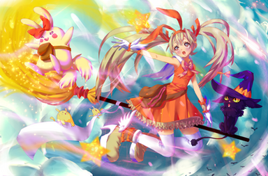 It was a beautiful October afternoon when Mari decided to grab her favorite broom and fly for a few rounds with Yunyun, her cutest little friend. Being a witch as she is, she was quite clumsy, usually day-dreaming. It wasn't long before a a gust of wind came, a bird swiftly passed her and Yunyun. She was startled, poor Yunyun was almost blown away if he didn't hold on tightly to the little girl's cape."how rude" - she thought.