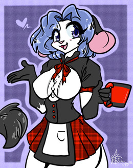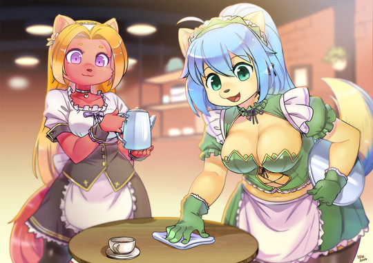 #anthro #antrho #bear #blush #clothes #coffee #commission #dress #female #fullcolor #furry #halfbody #maid #oc #original #reshi #safe #sfw #solo #original_character #female_solo #reshistart