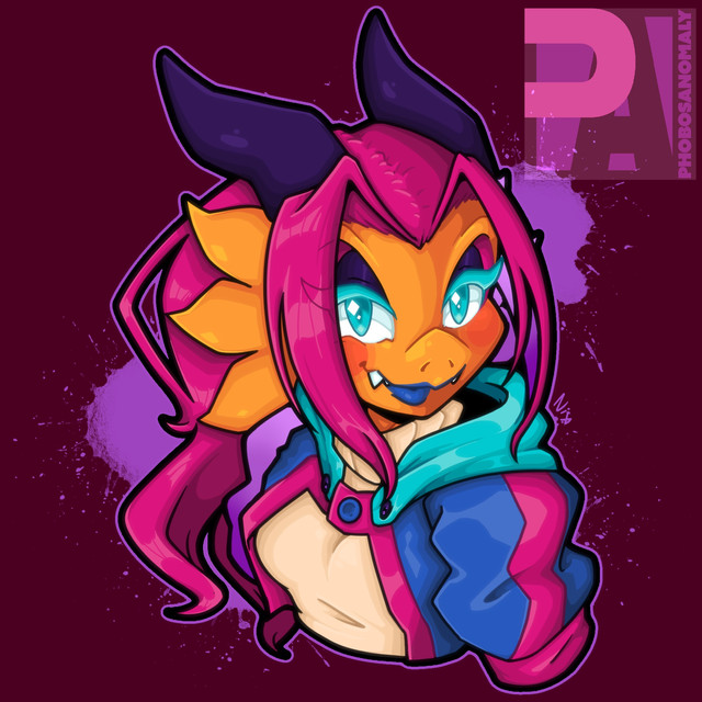 #boobs #breasts #commission #female #fullcolor #furry #halfbody #horns #icon #oc #safe #scalie #sfw #solo #wings #butterboy #original_character #blue_hair #red_skin