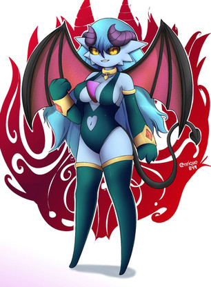 #bug #clothes #commission #demon #fiera #fullbody #fullcolor #horn #hybrid #lewd #lingerie #monster #oc #original #red #safe #sexy #sfw #tail #original_character #red_body #adracoarts
