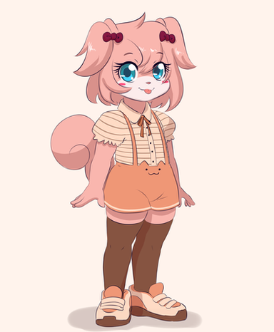 #adoptable #boots #cherry #clothes #fangs #female #fruits #fullbody #fullcolor #oc #safe #sfw #socks #solo #wings #original_character #red_hair #rmaxwellbrownie