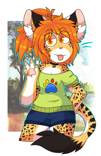 #antrho #cheetah #clothes #cute #feline #female #fullbody #fullcolor #furry #ginger #gloria #hippie #kawaii #procreate #redhead #safe #sai #sfw #gloria_tiller #f0xnr0ll