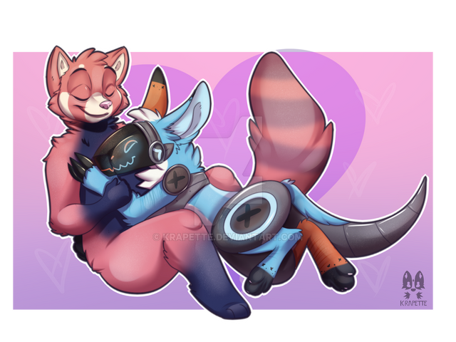 #anthro #antrho #commission #couple #female #fullbody #fullcolor #furry #lesbian #love #monster #moonbox #oc #original #paypal #raccoon #robot #safe #sfw #original_character #robot_arm