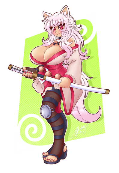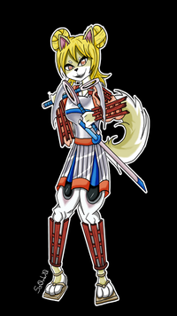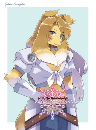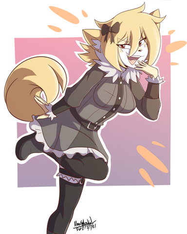 #anime #blonde #boots #canine #clothes #dakota #dog #dress #fanart #female #fullbody #fullcolor #furry #lewd #oc #original #sfw #skirt #solo #suit #sword #trigger #junketsu #original_charater #female_solo #kill_la_kill #satsuki_kiryuin