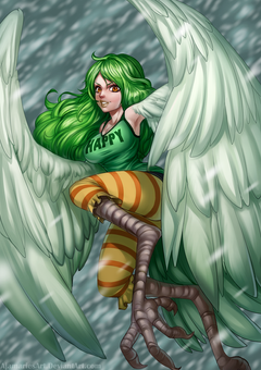 #anime #antrho #fanart #female #fullbody #fullcolor #girl #harpy #human #humanoid #manga #monet #monster #safe #sfw #solo #wings #clohtes #one_piece #monster_girl #female_solo