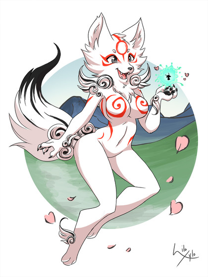 #amaterasu #boobs #breasts #cute #dog #female #furry #okami #videogames #wolf #fire