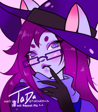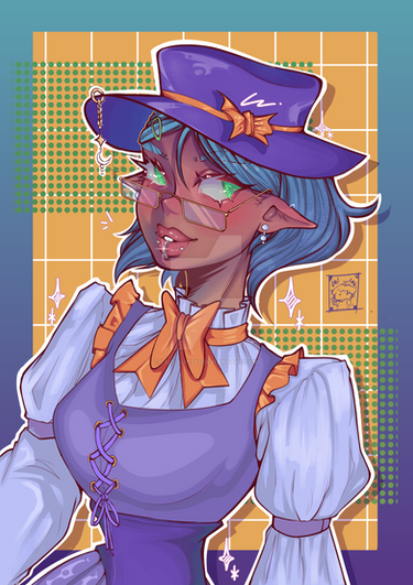 #witch #clothes #commission #earrings #female #glasses #hat #human #humanoid #icon #lipstick #octopus #purple #safe #sfw #spud #squid #half_body #pointy_ears