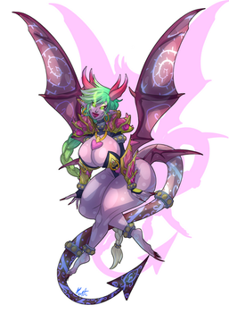 #adoptable #collab #fangs #female #fullbody #fullcolor #furry #glasses #goat #horns #lewd #oc #sexy #succubus #wings #original_character #monster_girl #red_skin #riipley