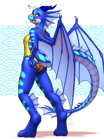 #antrho #clothes #commission #cute #fullbody #fullcolor #furry #horns #inflatable #kawaii #oc #original #safe #scalie #sfw #swimsuit #original_character #yotomoco