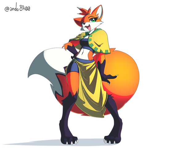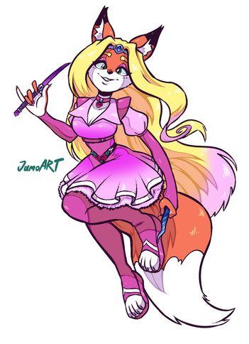 #fox #clothes #collar #commission #female #fullbody #fullcolor #furry #oc #original #pearls #wine #original_character #orange_and_green #superstarlite