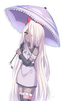 #fanart #cartoon #clothes #demon #fullbody #fullcolor #safe #sfw #solo #vaggie #white_hair #monster_girl #gray_skin #vivziepop #hazbin_hotel