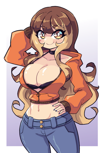 #commission #big #big_boobs #blonde #clothes #female #fullbody #fullcolor #human #lewd #sexy #solo #big_breasts #pink_eyes #summonerelcrest