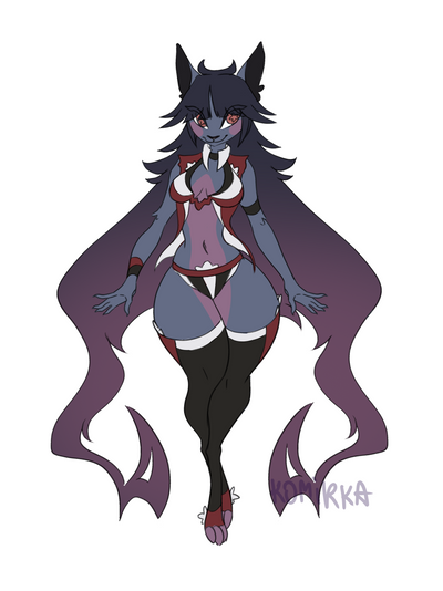 #adoptable #clothes #darkwolf #demon #devil #female #fullbody #fullcolor #horns #monster #oc #red #sad #safe #sfw #solo #original_character #white_hair #female_solo #red_body