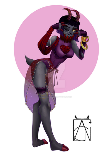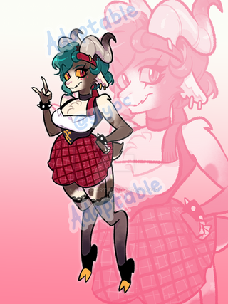 #adoptable #demon #dress #emo #female #fullbody #fullcolor #furry #goat #goth #horns #lolita #safe #sfw #shoes #socks #solo #original_character #earrins #monster_girl #baschemon