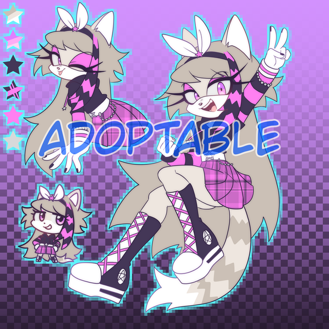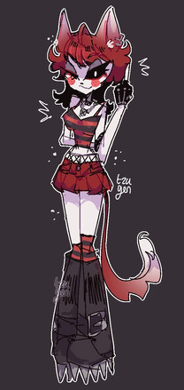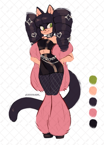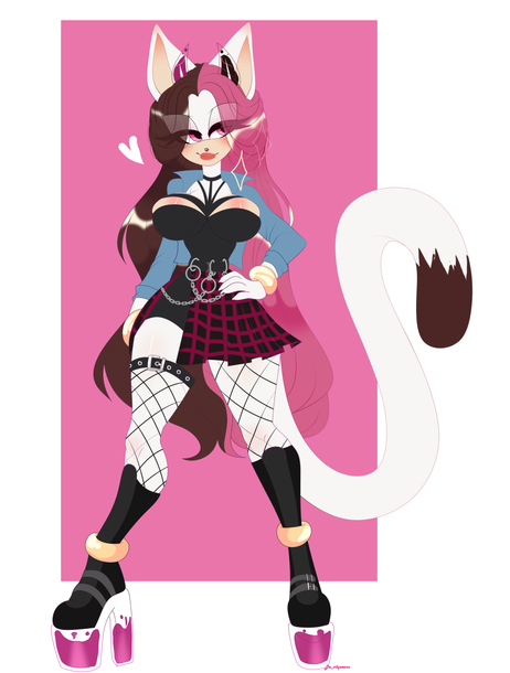 #cat #adoptable #clothes #emo #feline #female #fullbody #fullcolor #furry #goth #oc #safe #sfw #skirt #solo #original_character #black_hair #green_eyes #fernthemorpho