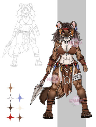 #antrho #caveman #clothes #commission #female #fullbody #fullcolor #furry #hyena #oc #original #procreate #safe #sai #sfw #shape #solo #original_character #female_solo