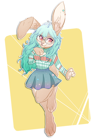 #bunny #adoptable #blonde #female #freckled #fullbody #fullcolor #furry #glasses #oc #rabbit #safe #sfw #skirt #solo #tooth #zoichi #original_character #green_eyes #long_ears #long_skirt