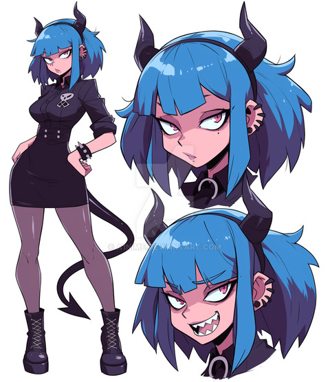 #bat #bully #clothes #demon #devil #female #fullbody #fullcolor #horns #safe #school_uniform #sfw #saifuku #monster_girl #black_clothes #sailor_fukum #grandetexan
