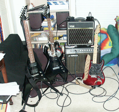 While my getting a respectable amp is still in the works, I have enough effects now to take down the better part of Neo China! Previous recordings haven't utilized them due to time constraints and the fact that I was still wrestling with settings, but these make my recordings a LOT tighter, and enable a lot more guitar-wise.[Geeky guitar lingo ahead]