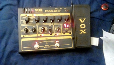 -Digitech RP200 Effects Processor. Truth be told, the distortion on this thing is crap, but it makes up for it in the choruses, reverbs and whammy alone. Takes some skill to use simply due to the overwhelming number of settings. I mean seriously. Christ.