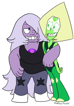 One of the 4 alien space rocks from Steven Universe who happen to be made from my birthstone giving the peace sign. Yeah, Diamond's the birthstone for April, in case you didn't know.Again this is the same drawing I did of Pink Diamond for the Six Fan Arts Challenge, but I decided to give Pink Diamond a pink background, as really what other colour would suit her and would look better than just plain white alone.